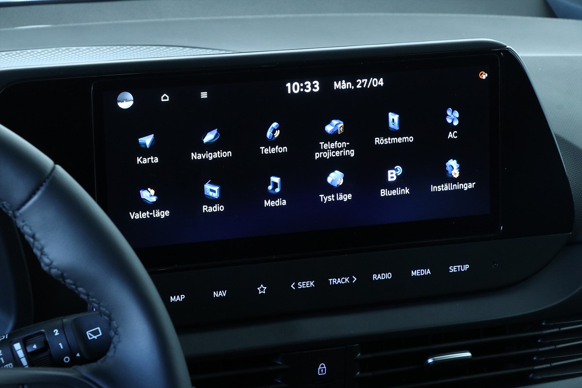 Backkamera, ACC & Klimatanläggning, Apple CarPlay, Android Auto, Bluetooth media & handsfree, Farthållare, Navigation, Parkeringssensorer, Lanekeep assist, Regnsensor, ISOFIX, Multifunktionsratt, Sätesvärme fram, Rattvärme