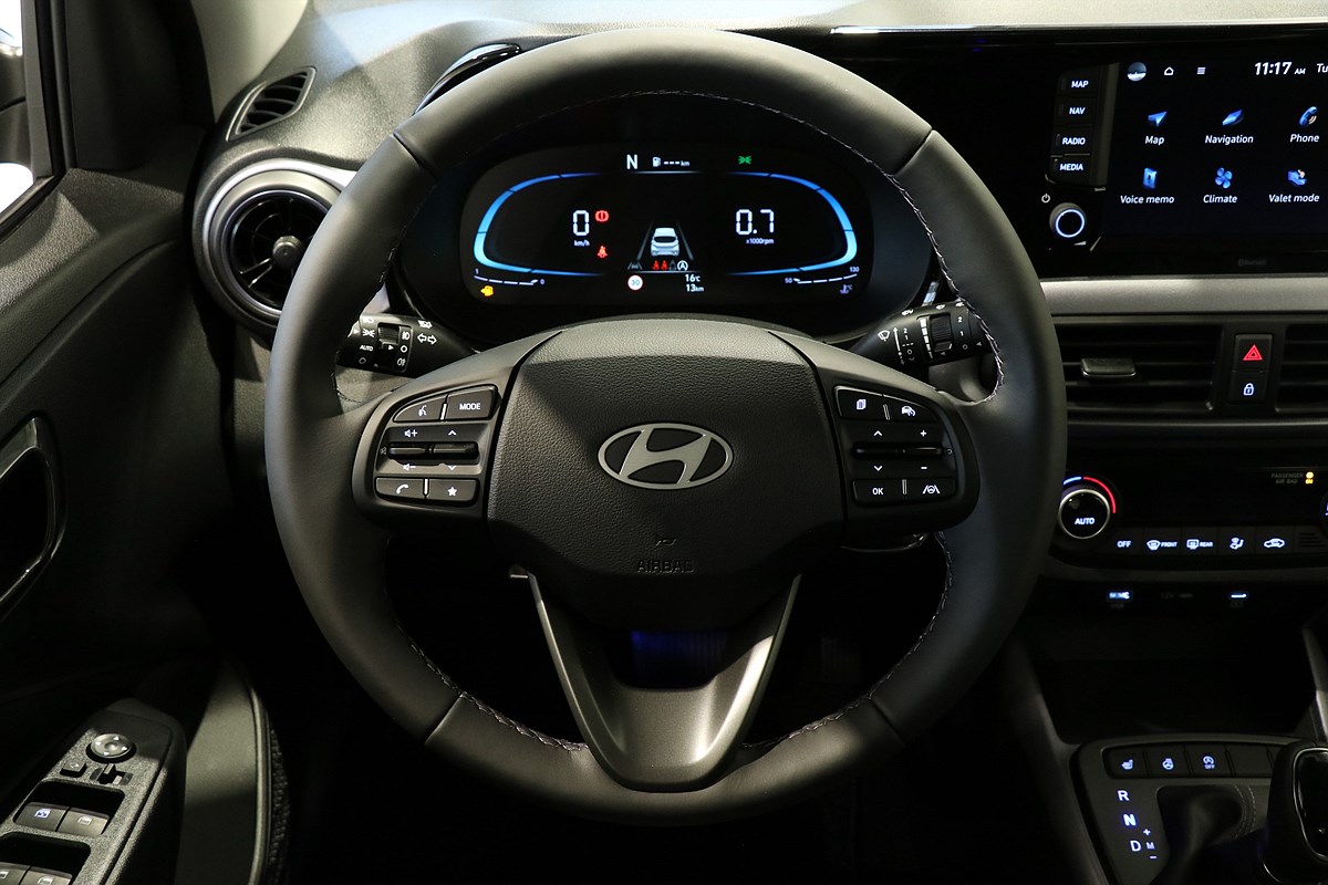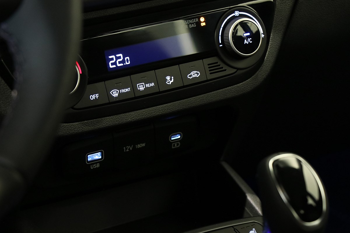 15 tum Aluminiumfälgar, Parkeringssensorer bak, Backkamera, Auto Light, Autobroms m detektering av fordon, Filhållningsassistans, Filkörningsassistans, Förberedd för dragkrok, Start Stopp, LED Positionsljus, LED Varselljus, Skyltavläsare, Bluelink Connected Car services, Apple CarPlay, Android Auto, Farthållare, Navigation, Armstöd fram, statiskt kurvljus, ACC & Klimatanläggning