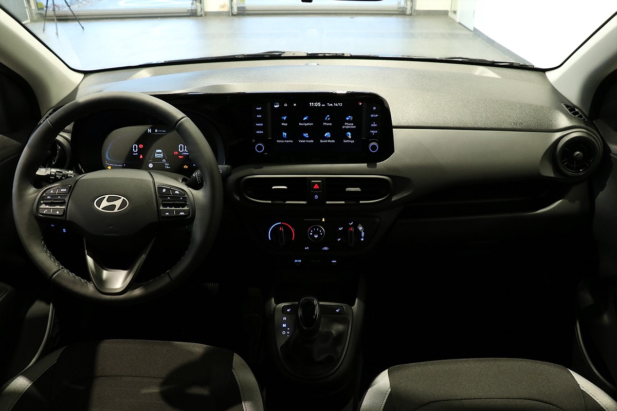 Parkeringssensorer bak, Backkamera, Auto Light, Autobroms m detektering av fordon, Filhållningsassistans, Filkörningsassistans, Förberedd för dragkrok, Start Stopp, LED Positionsljus, LED Varselljus, Skyltavläsare, Bluelink Connected Car services, Apple CarPlay, Android Auto, Farthållare, Navigation, AC